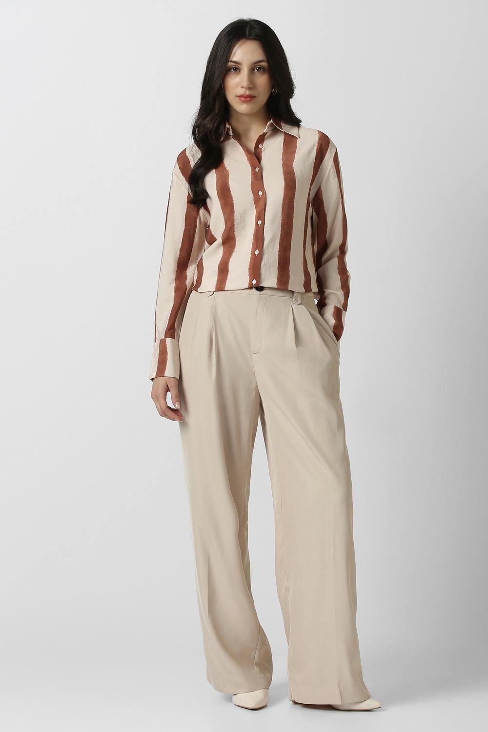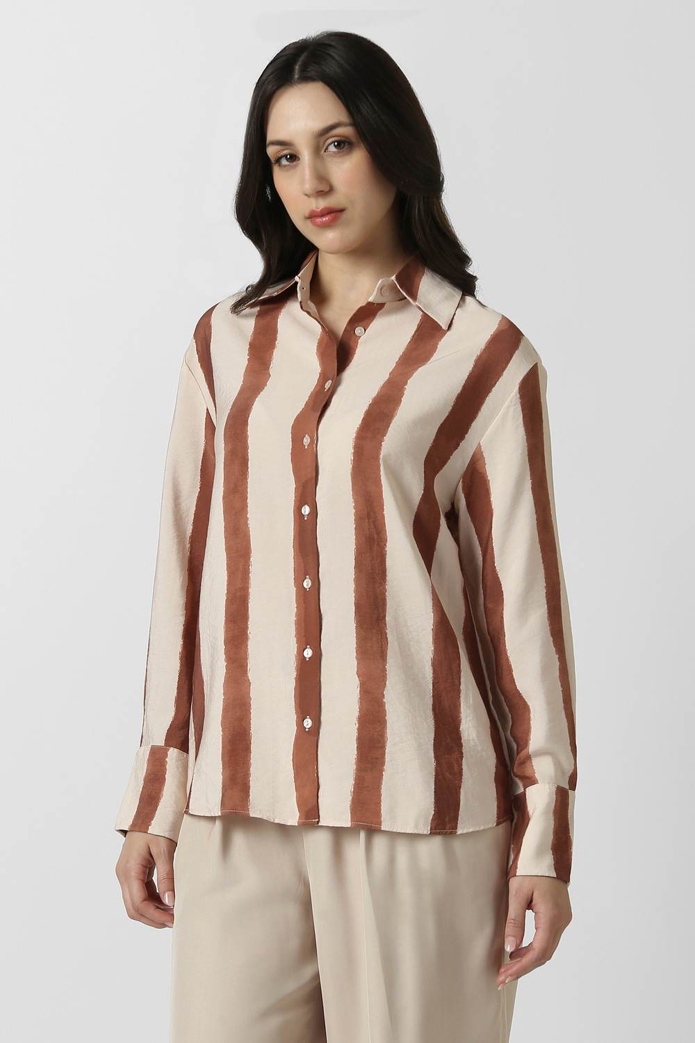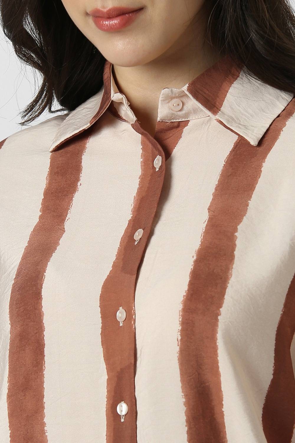 Step into sophistication with this Van Heusen shirt, crafted from a lightweight blend of nylon and viscose in an elegant beige hue. The alluring stripe pattern enhances its aesthetic appeal, perfect for a stylish party look. Designed for a flattering drape, this shirt ensures you move with confidence and comfort, effortlessly blending modern fashion with timeless elegance. Elevate your wardrobe with this exquisite piece that speaks to your refined taste.