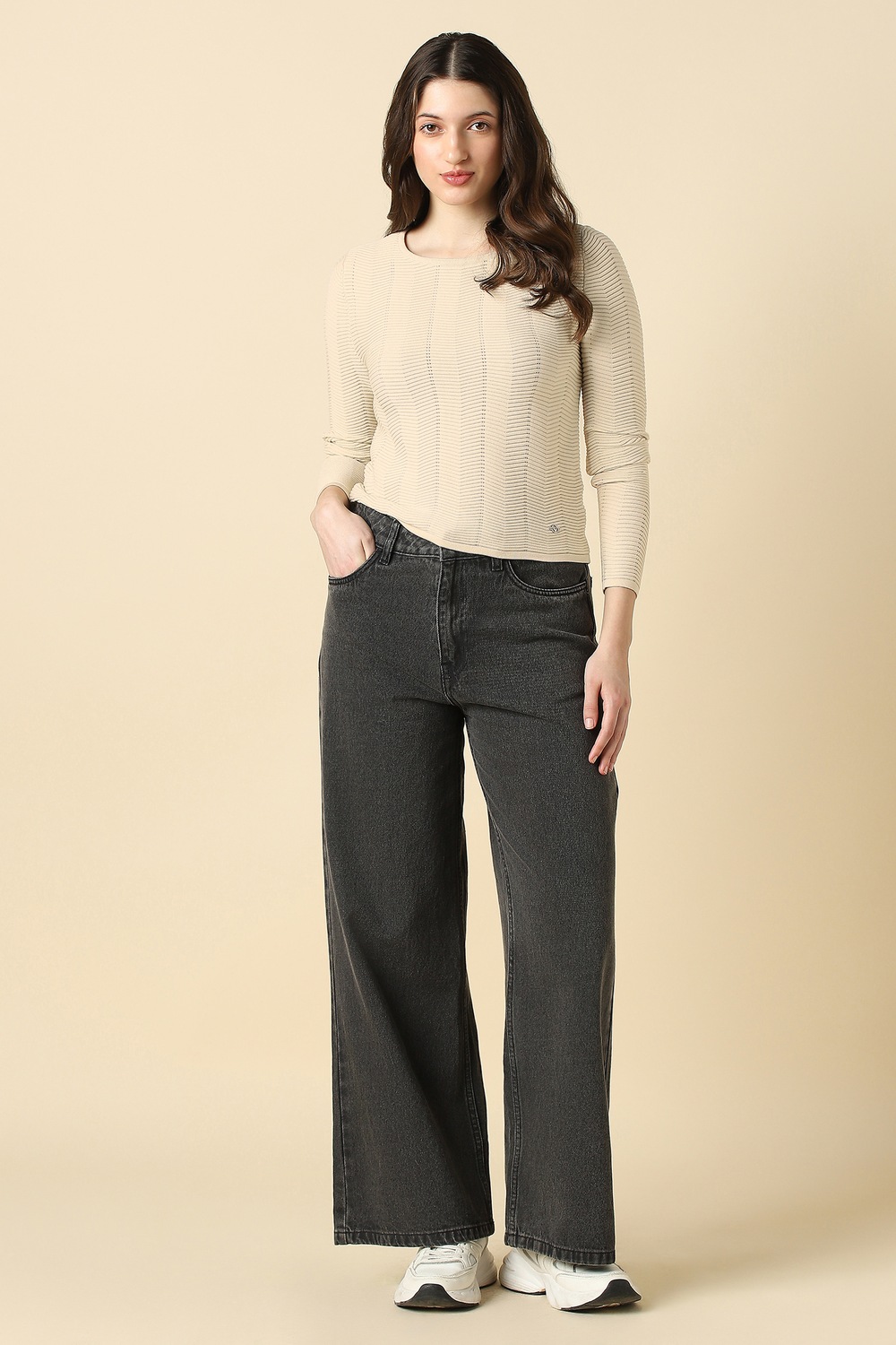 Elevate your casual wardrobe with this sophisticated beige top from Allen Solly. Crafted from a luxurious blend of polyester and viscose, it features a round neckline and a beautifully textured pattern for an elegant touch. The versatile design ensures it pairs effortlessly with your favorite bottoms, making it the perfect choice for any casual occasion. Discover the effortless charm of this timeless piece that adds a refined essence to your everyday style.