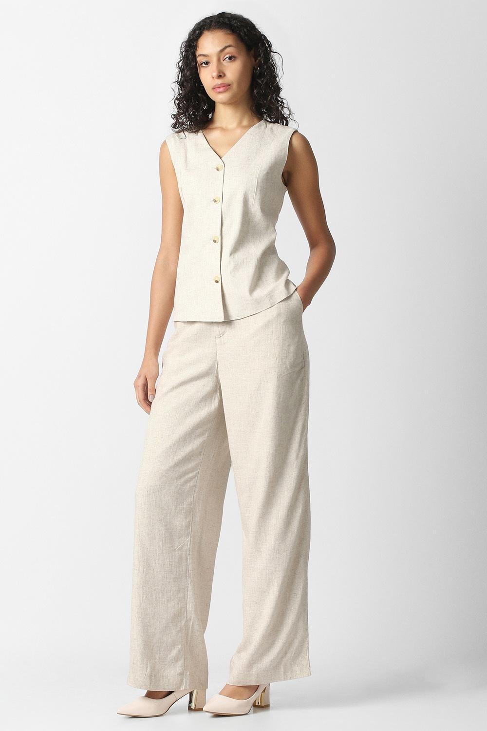 Sophistication meets allure with these textured trousers from Van Heusen. Skillfully designed in a harmonious blend of cotton and linen, they promise graceful movement for casual gatherings. The soft grey hue complements a myriad of outfits, making them a staple for effortless styling. Enjoy luxuriously breathable wear that keeps you feeling fresh throughout your day. Embrace your personal style with these versatile trousers, destined to elevate any wardrobe with timeless charm.
