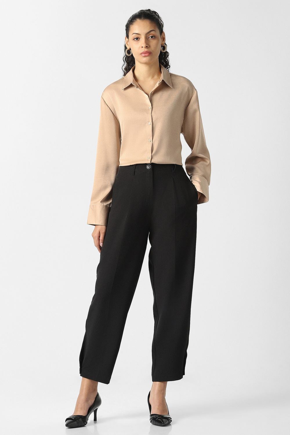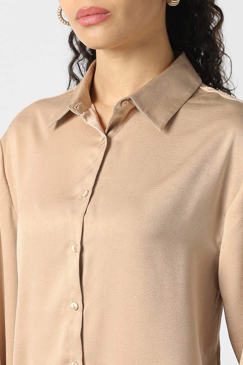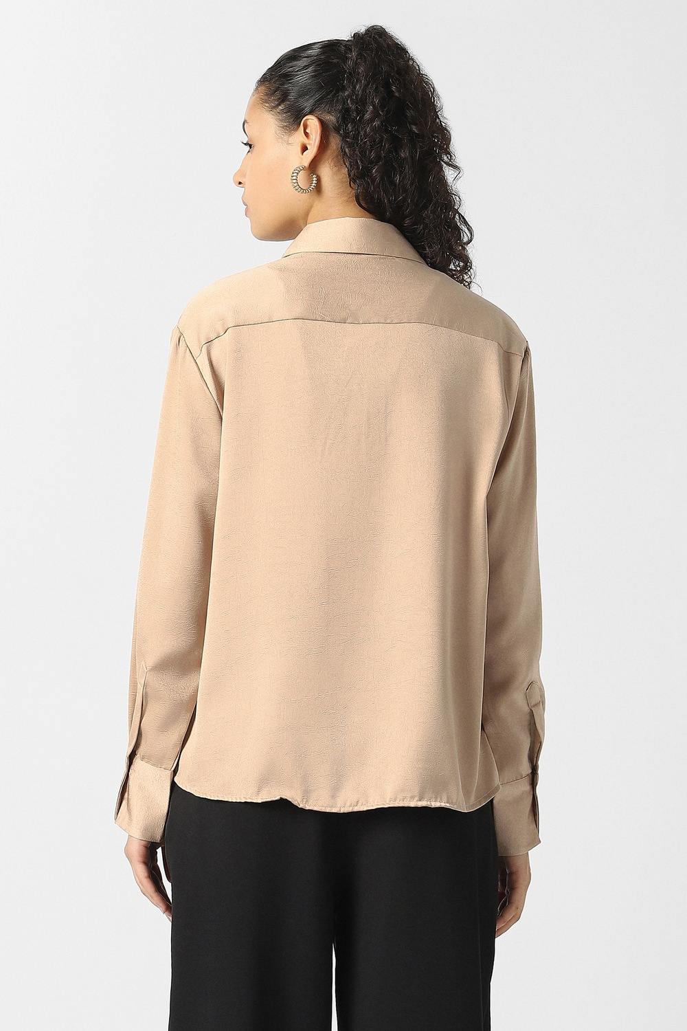 This Van Heusen formal shirt in beige features a unique textured design that adds depth and sophistication to your wardrobe. Crafted from high-quality polyester, it ensures comfort and durability for long wear. Perfect for formal occasions, this shirt exudes elegance, making it a versatile choice for the modern woman. Elevate your style with this refined piece that seamlessly complements both professional and evening looks.