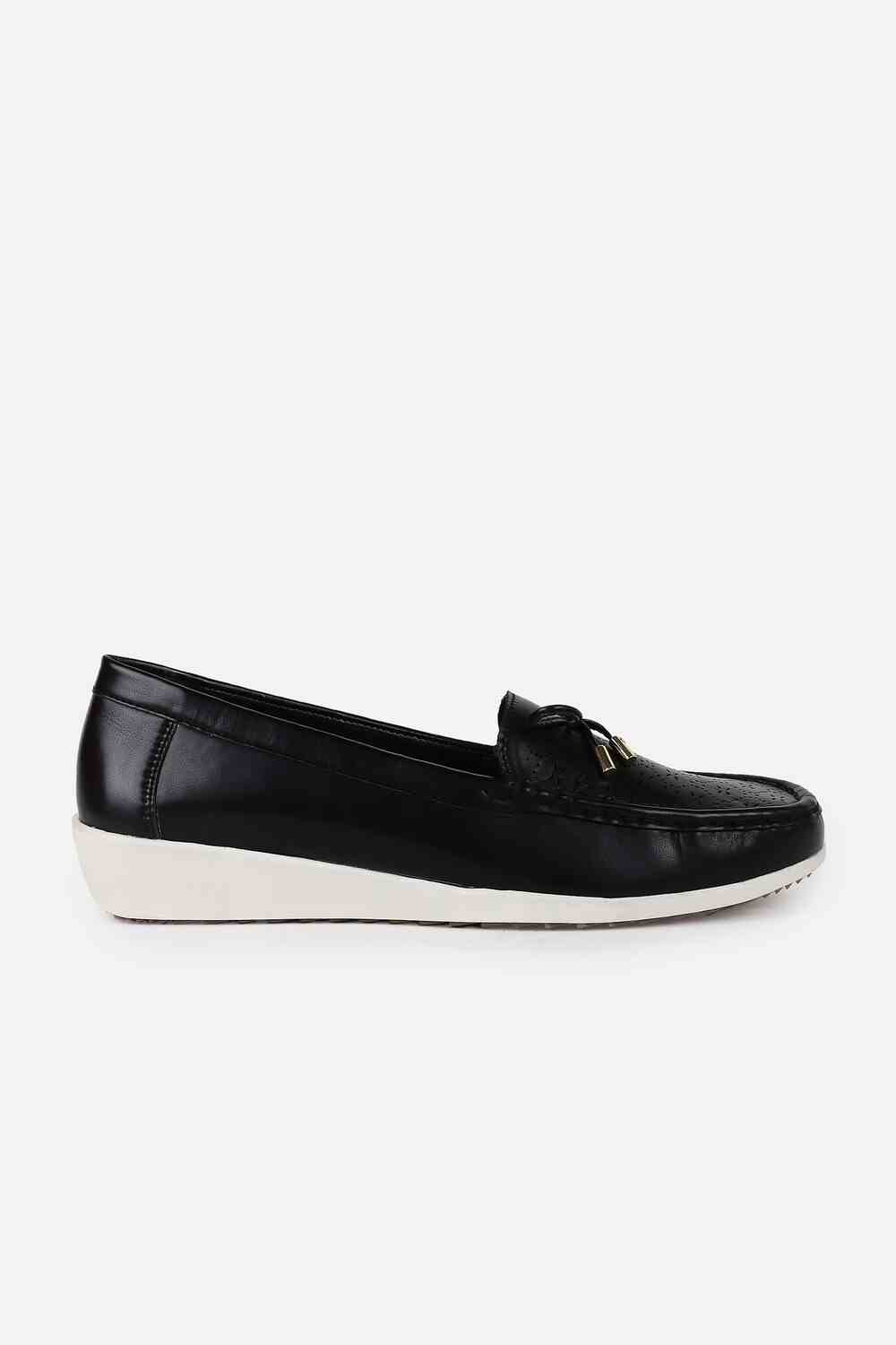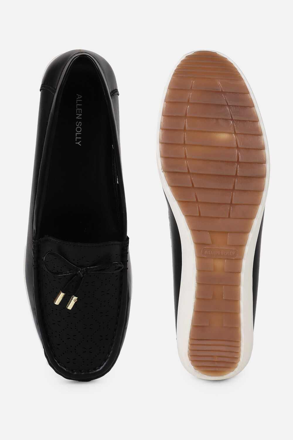 Embrace effortless elegance with the Allen Solly women`s slip-on heels in black. Crafted from premium vegan leather, these heels seamlessly blend comfort with contemporary style. Designed for casual occasions, their solid pattern adds a touch of sophistication to any outfit. The lightweight EVA sole ensures all-day comfort, making them perfect for from brunch to evening events. Elevate your footwear collection with these chic essentials.