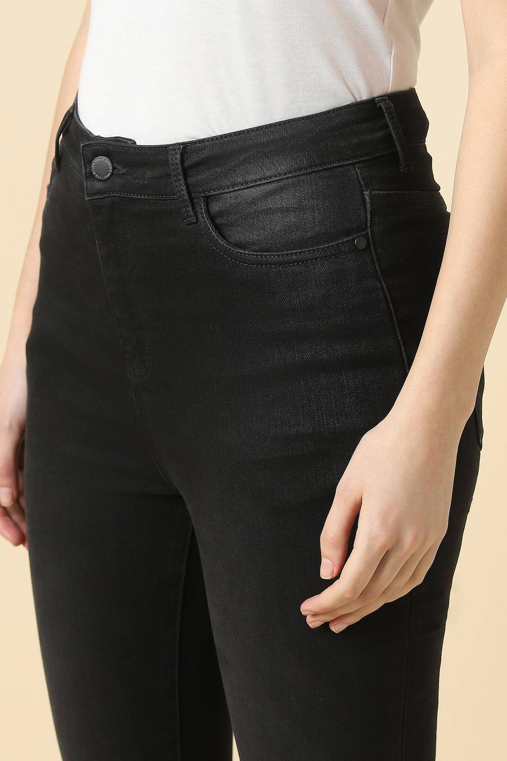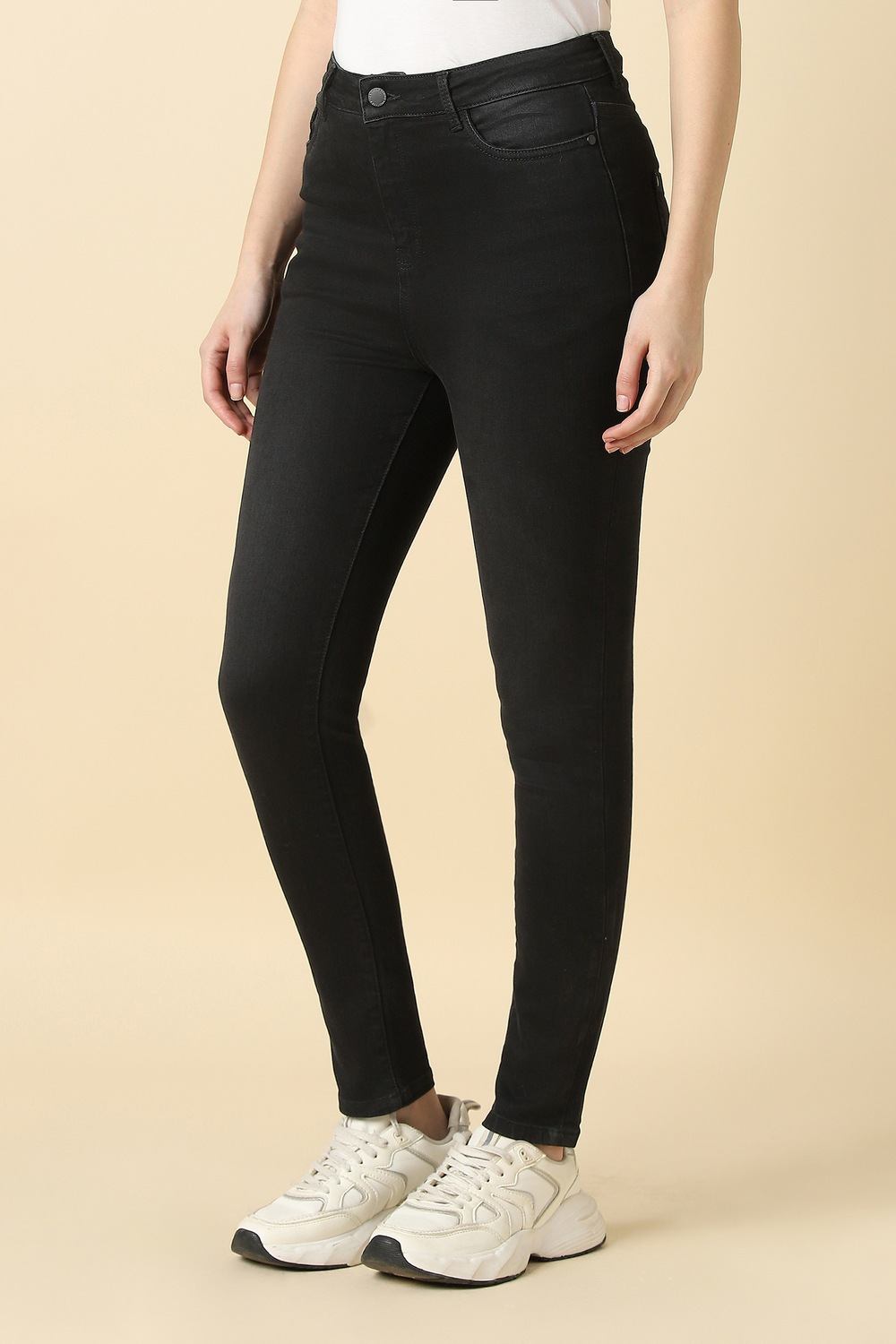 Experience effortless style with Allen Solly black jeans, crafted from premium cotton for unparalleled comfort. Designed for casual occasions, these solid-pattern jeans offer versatile styling options. The dark wash enhances their sleek appeal, making them a must-have for any wardrobe. With their classic silhouette, these jeans can effortlessly elevate your everyday look while ensuring all-day wearability. Redefine your casual attire with this essential staple.