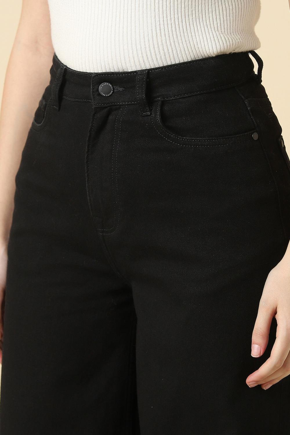 Discover effortless style with the Allen Solly black jeans crafted from premium cotton. Perfect for casual outings, these solid-patterned jeans offer versatility and comfort without compromising on elegance. Designed for a relaxed fit, they ensure easy movement while the dark wash adds a touch of sophistication. Elevate your wardrobe with a staple piece that effortlessly blends with your favorite tops, creating a chic look for any occasion.
