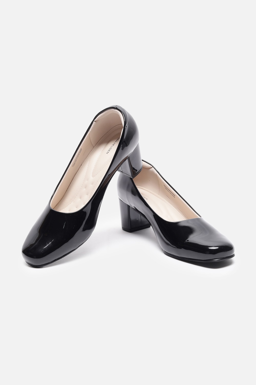 Step into elegance with the Van Heusen women's heels, crafted from premium vegan leather in a sleek black hue. Designed for formal occasions, these solid-patterned heels combine sophistication and comfort. The durable EVA sole provides excellent support, allowing you to move with confidence. Elevate your wardrobe and make a statement at any event with these chic heels that embody modern luxury and timeless style.