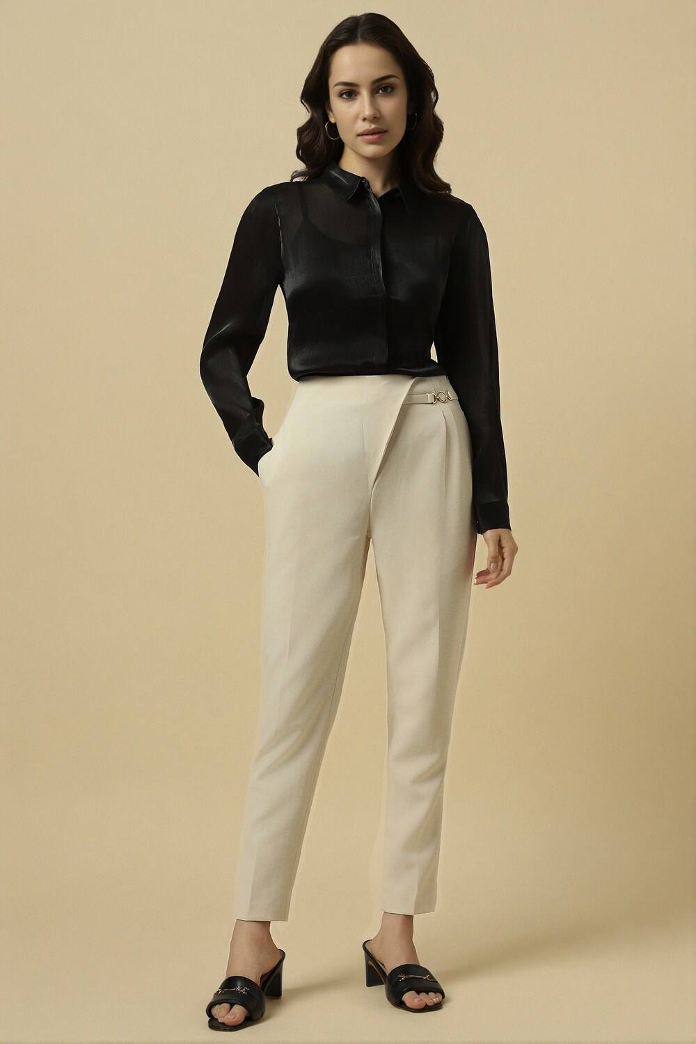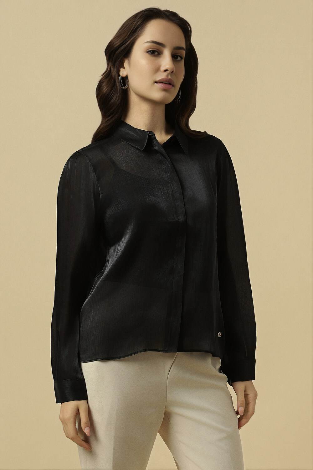 Embrace casual elegance with the Allen Solly textured black shirt, designed for the modern woman. Crafted from soft polyester, this regular fit shirt features long sleeves that provide comfort throughout the day. Its unique textured pattern adds visual interest, making it a versatile choice for various occasions. Perfect for effortless styling, this shirt enhances your wardrobe while ensuring you stay chic and comfortable.
