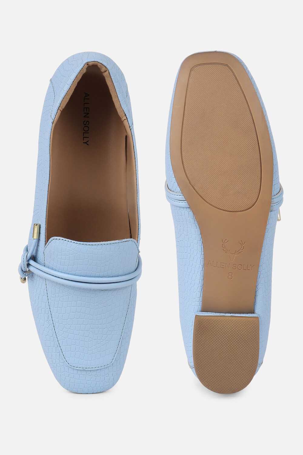 Step into sophistication with the Allen Solly textured slip-on heels in a vibrant blue hue. Crafted from high-quality vegan leather, these heels offer style and comfort, making them perfect for casual outings. The lightweight EVA sole ensures all-day wear, providing both durability and support. Elevate your footwear collection with these chic slip-ons that effortlessly blend elegance and ease. Perfect for every modern woman`s wardrobe.