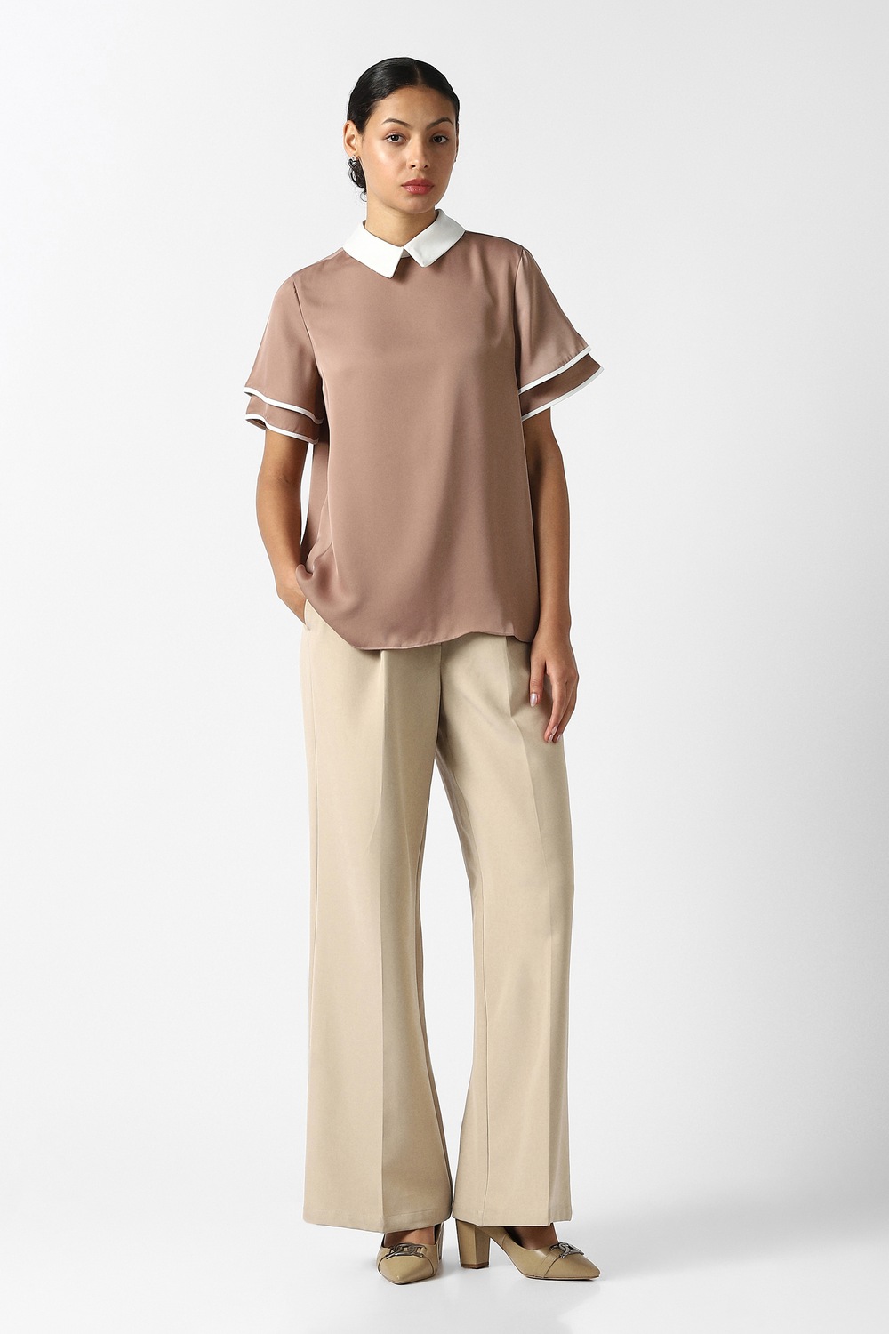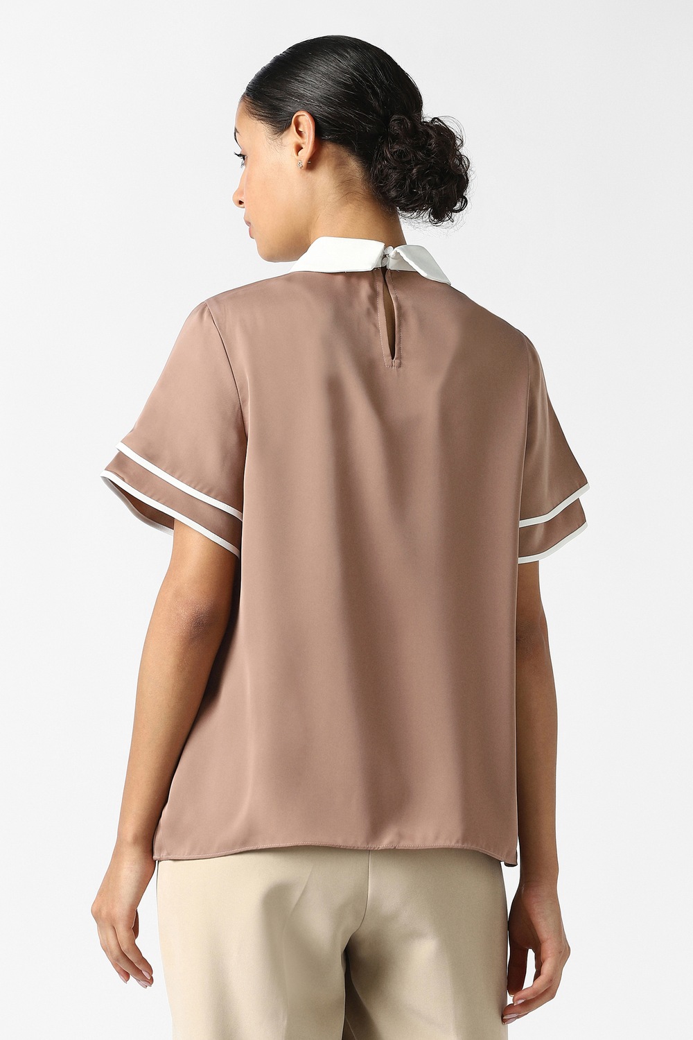 This elegant Van Heusen top in rich brown is designed for the modern woman who values sophistication. Crafted from premium polyester, it features a chic stylized neckline and a solid pattern, making it perfect for formal occasions. The refined style offers versatility, ensuring you make a lasting impression. Elevate your wardrobe with this essential piece that seamlessly blends comfort and elegance for any upscale event.