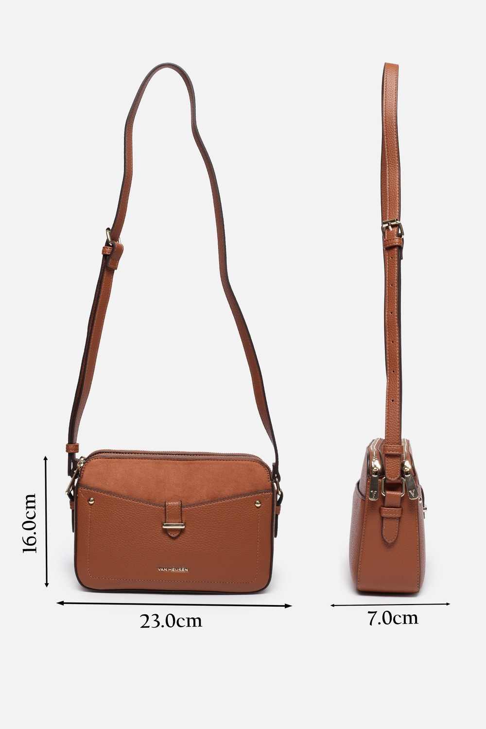 Elevate your casual look with the Van Heusen sling bag in rich brown vegan leather. Featuring a textured finish, this stylish accessory is perfect for day-to-day outings. Its lightweight design ensures easy carrying, while the chic appearance adds a touch of sophistication to any outfit. The versatile color complements various styles, making it an essential addition to your collection. Embrace elegance with a flair that leaves a lasting impression.