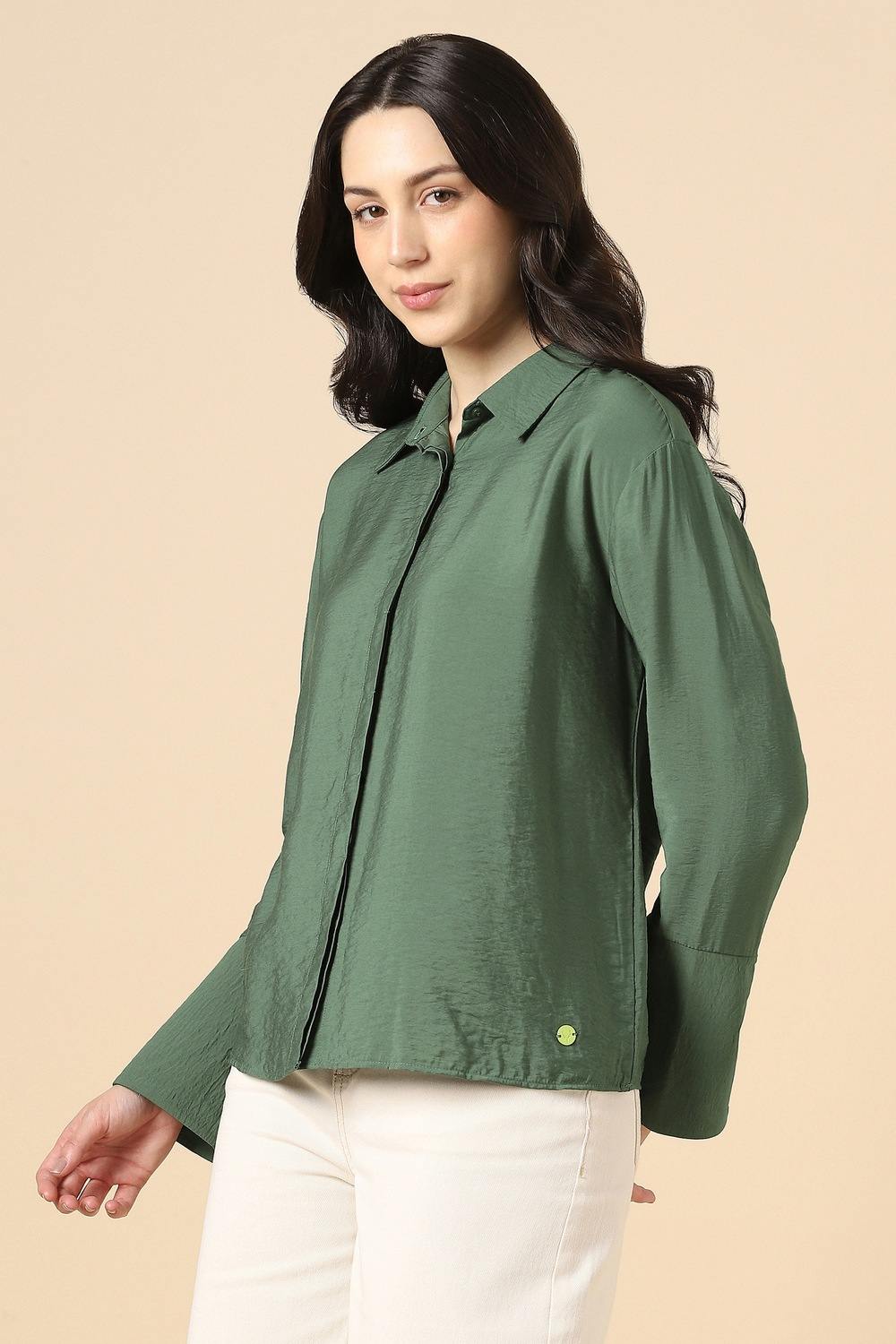 Effortlessly stylish, this Allen Solly shirt in a vibrant green hue is crafted from a luxurious rayon and nylon blend. Its solid pattern makes it a versatile addition to your casual wardrobe, perfect for any laid-back occasion. The lightweight fabric drapes beautifully, ensuring comfort while keeping your look fresh and chic. Elevate your casual attire with this sophisticated piece that embodies elegance and modernity.