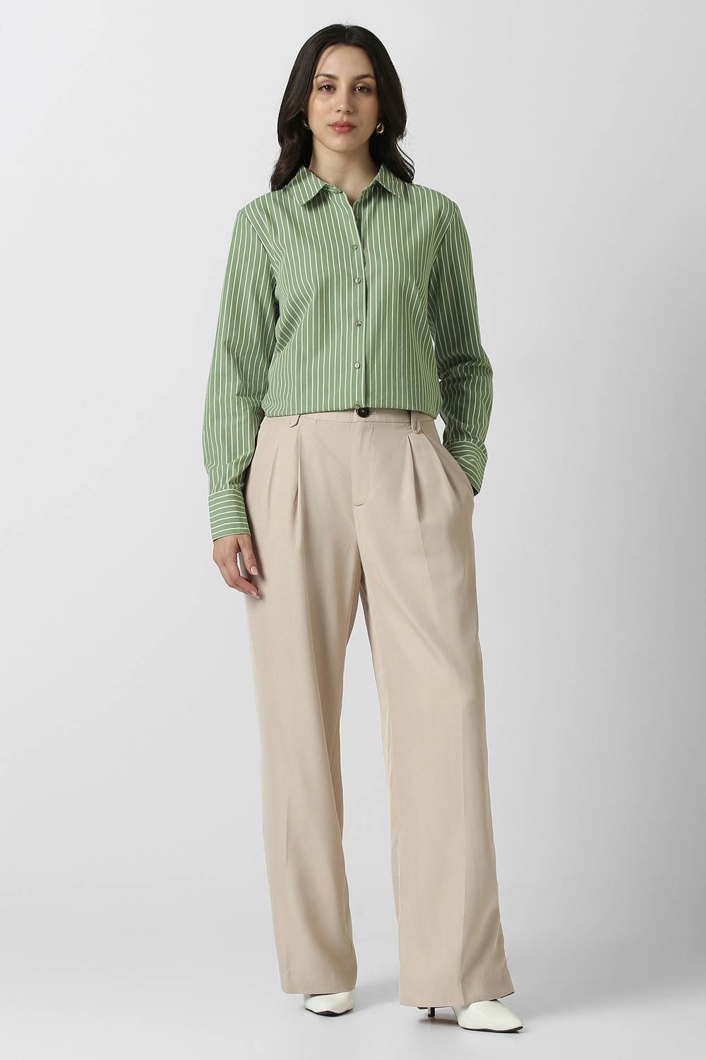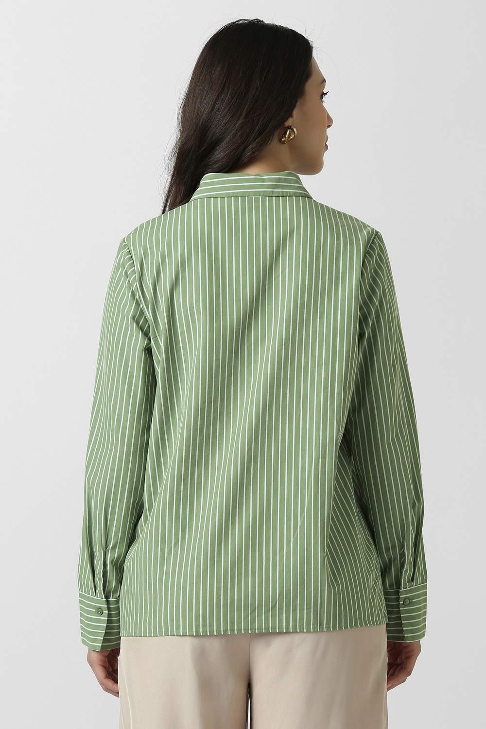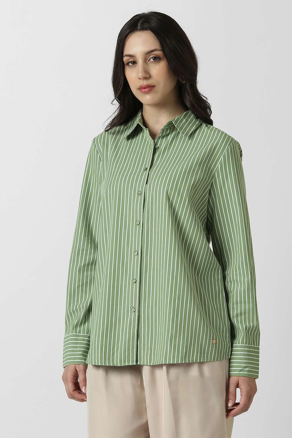 Elevate your formal wardrobe with this Van Heusen women's shirt in a refined green hue. Crafted from breathable cotton and featuring a sophisticated stripe pattern, this shirt offers both elegance and comfort. Ideal for office settings or formal events, its tailored design ensures a flattering silhouette. Embrace the blend of style and versatility that this essential piece brings to your collection. Enhance your style effortlessly with this statement shirt.