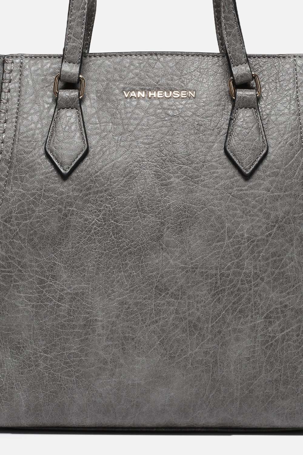 Elevate your formal looks with the sophisticated handbag from Van Heusen. Crafted from elegant vegan leather, this grey accessory features a stunning print that adds a fashionable touch to any ensemble. With ample space for your essentials, it combines style and practicality effortlessly, making it the perfect companion for professional occasions. Discover the allure of this handbag and enhance your wardrobe with a statement piece that defines grace and elegance.