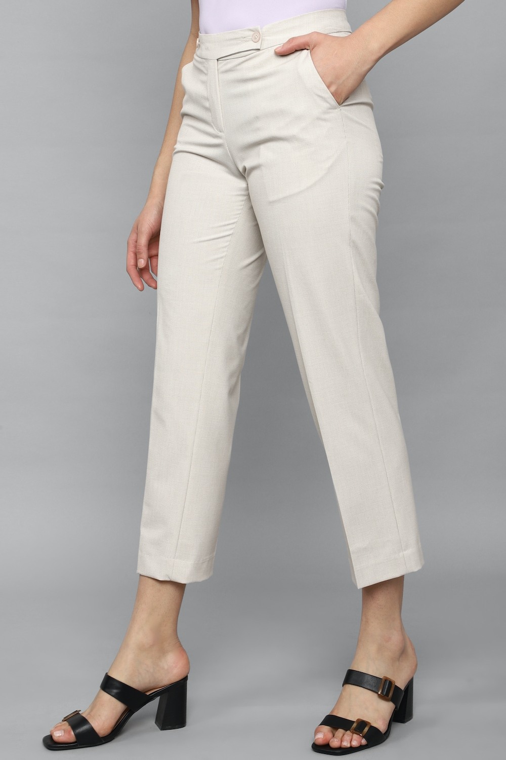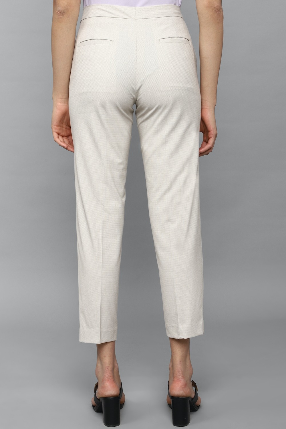 Elevate your casual wardrobe with these Allen Solly trousers. Crafted from a blend of polyester, viscose, and spandex, they offer a comfortable, regular fit that flatters your silhouette. The solid grey color adds versatility, making them perfect for everyday wear. Featuring a flat front design, these trousers seamlessly blend style and ease, allowing you to embrace effortless sophistication. Pair them with your favorite top for a polished look that embodies modern elegance.