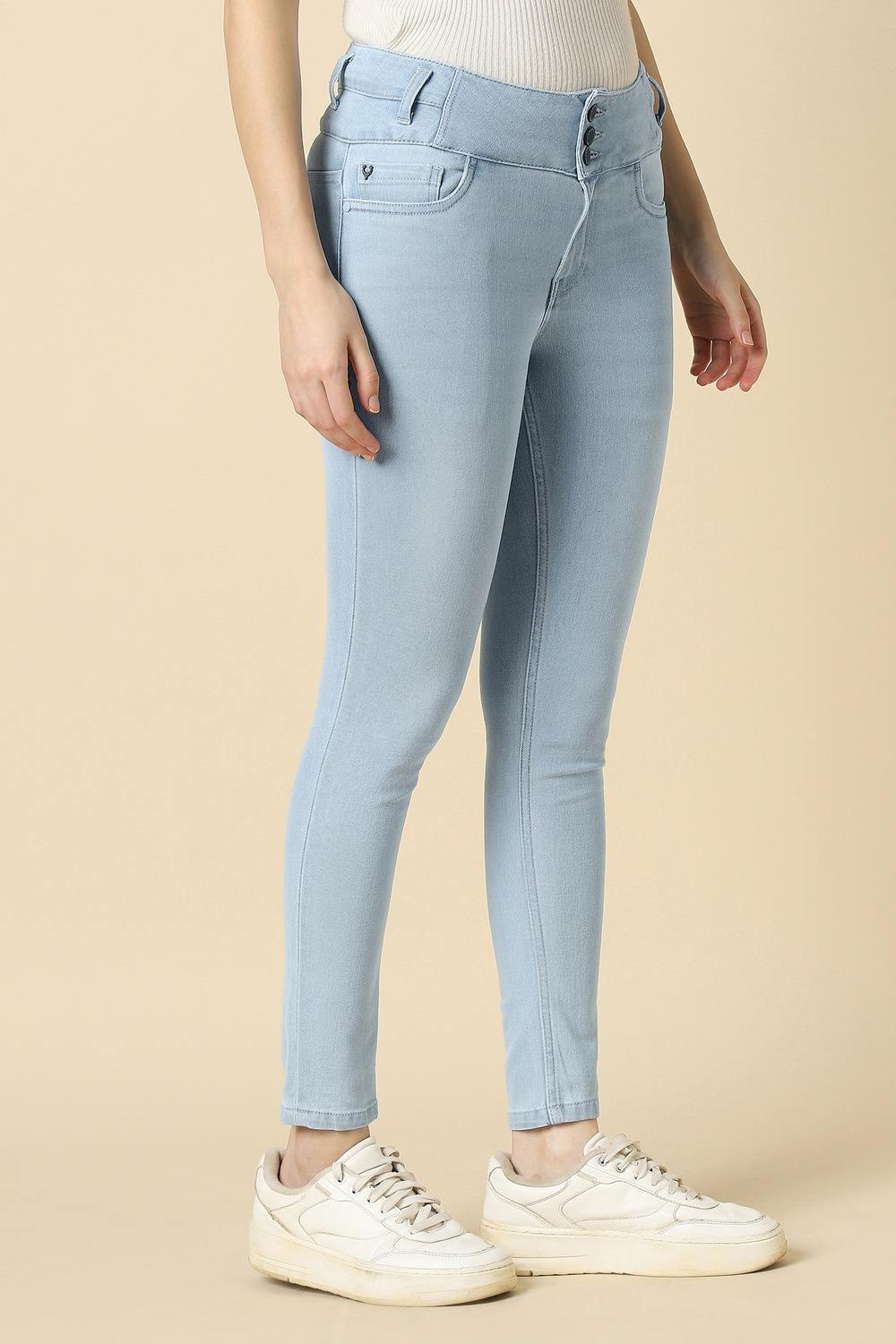 Elevate your casual wardrobe with these light blue jeans from Allen Solly. Crafted from a blend of cotton, polyester, viscose, and elastane, they offer incredible comfort and flexibility. The solid color adds versatility, making them perfect for any casual occasion. Whether paired with a tee or a stylish blouse, these jeans effortlessly combine style and ease, ensuring you look chic while feeling relaxed. Step into comfort with sophistication.