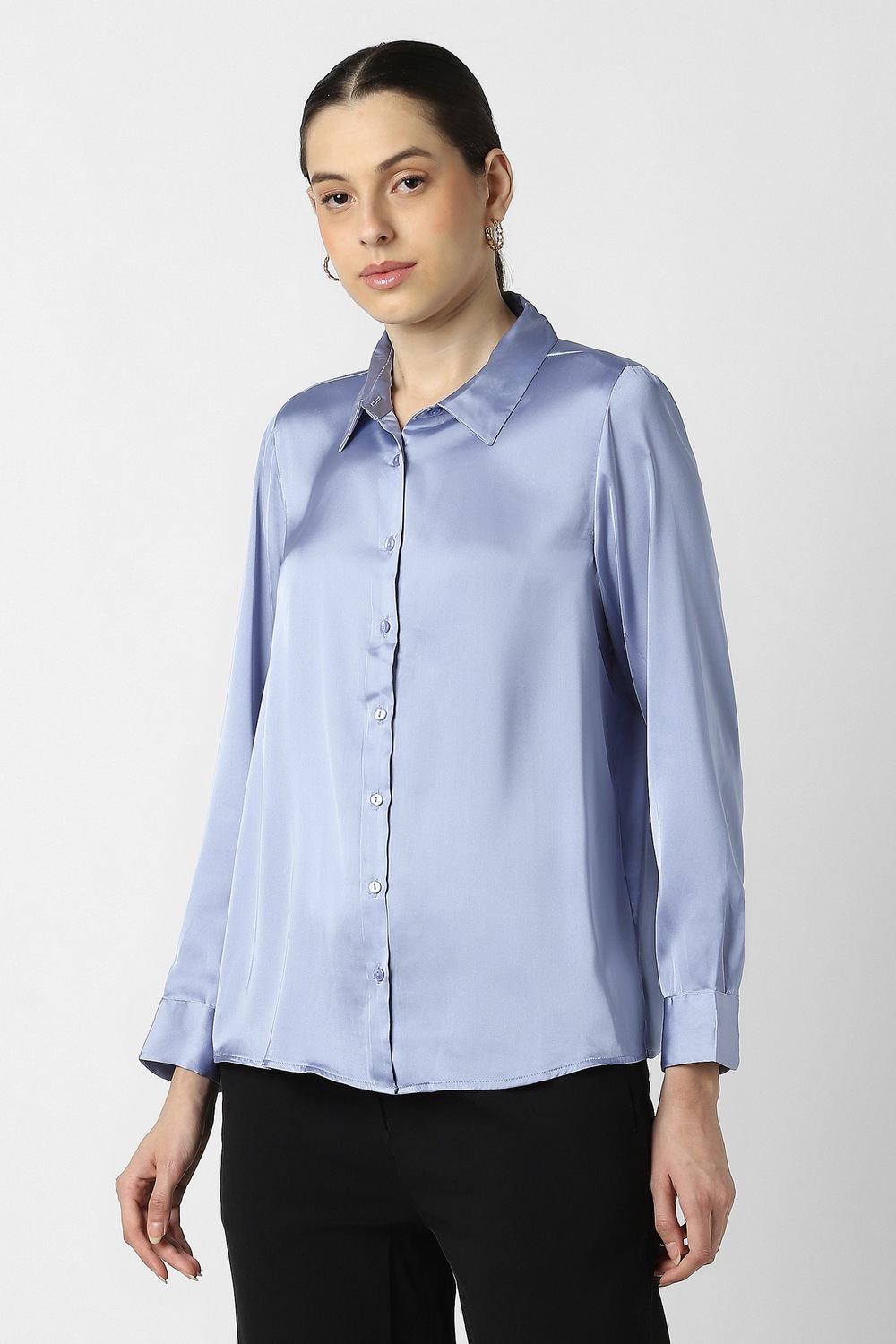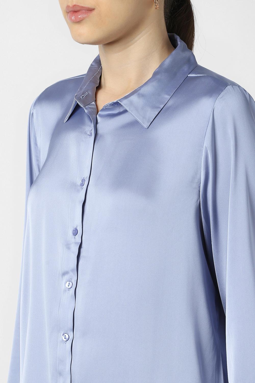 Elevate your office wardrobe with the Van Heusen women's formal shirt in light blue. Crafted from premium polyester, this solid-pattern shirt offers a sleek silhouette that combines elegance with comfort. Its versatile design makes it an ideal choice for formal occasions, ensuring you look polished and professional. With its breathable fabric, this shirt is perfect for all-day wear, exuding sophistication and style seamlessly. Experience the perfect blend of grace and practicality.