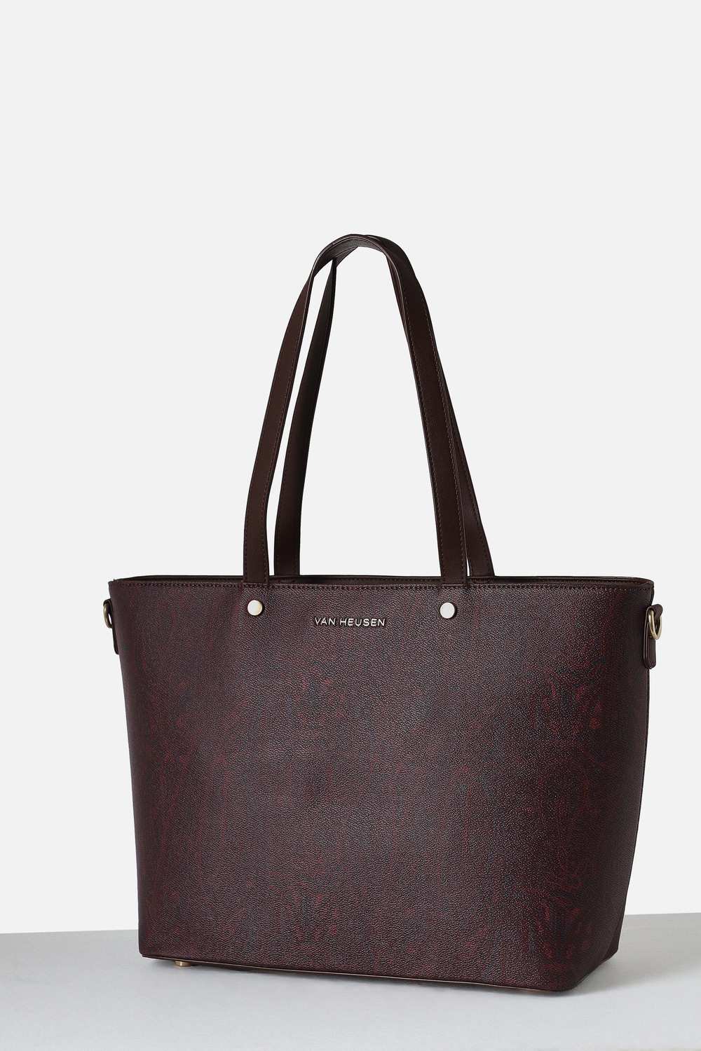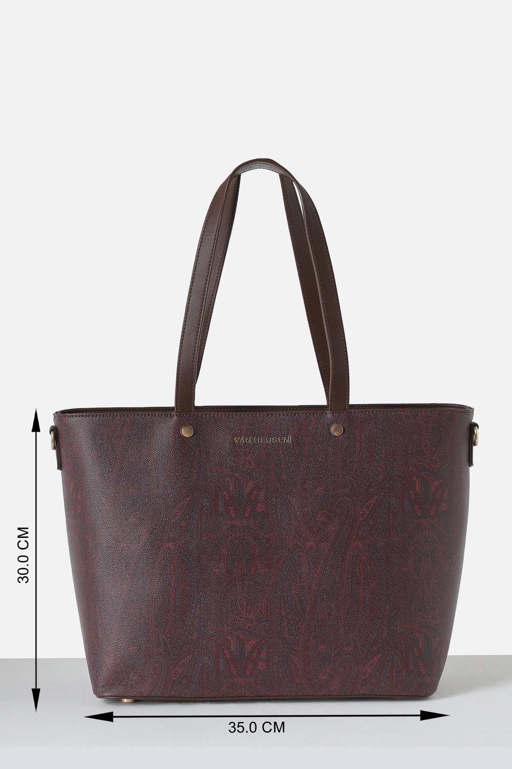 Discover the elegance of the Van Heusen handbag in a rich maroon hue. Crafted from eco-friendly vegan leather, this stylish bag features a chic print design, perfect for formal occasions. Its sophisticated appearance effortlessly enhances any outfit, making it a must-have accessory for the modern woman. Elevate your accessory game with this luxurious piece that combines style and sustainability, allowing you to make a statement with confidence.