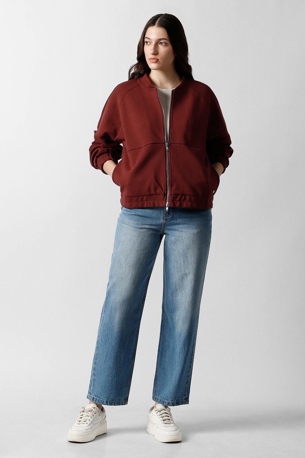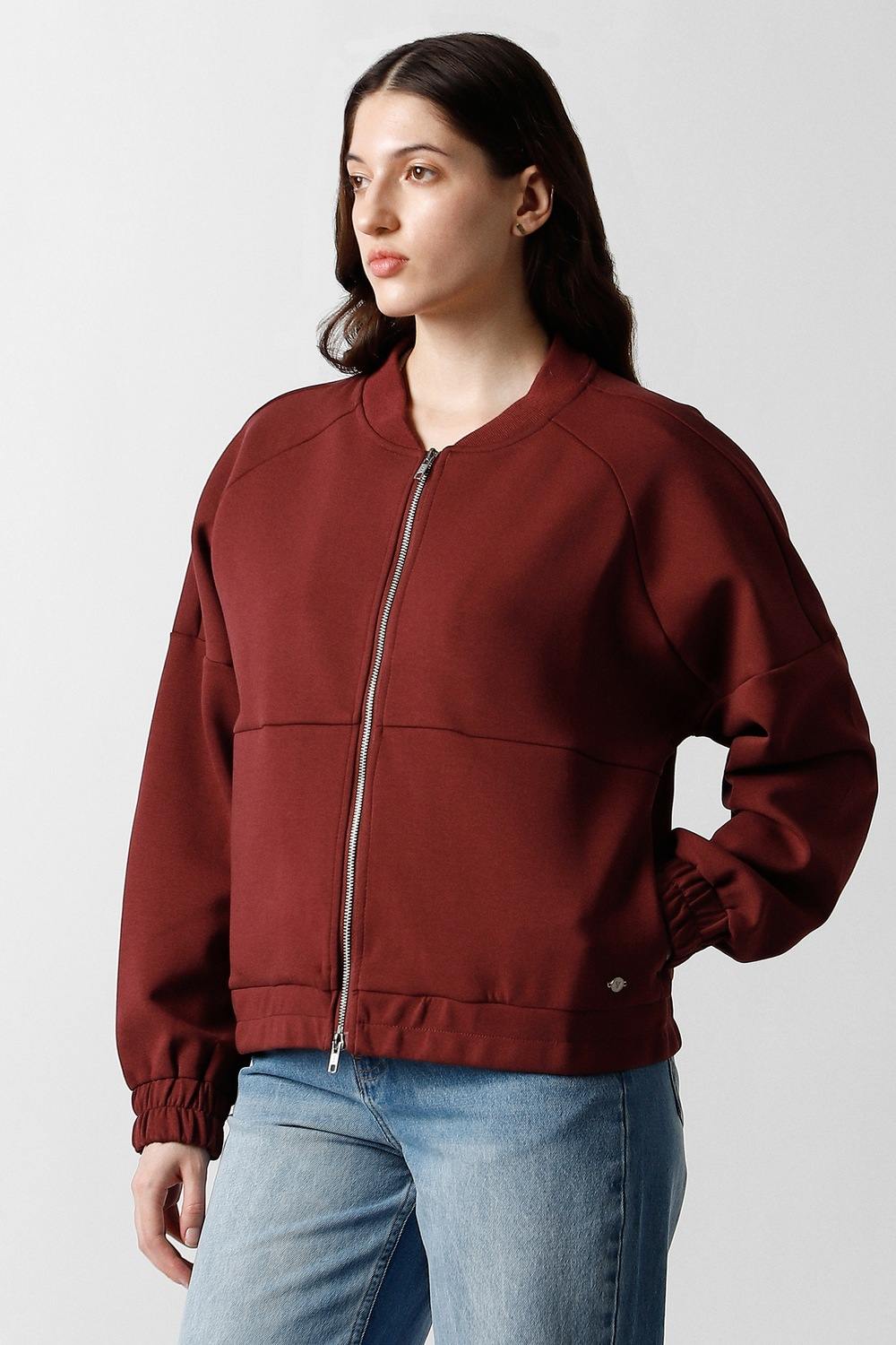 Elevate your casual wardrobe with the Van Heusen women's jacket in a rich maroon hue. Crafted from a luxurious blend of cotton, polyester, and elastane, this solid-patterned jacket ensures exceptional comfort and style. Its versatile design is perfect for layering, making it an ideal choice for any casual occasion. Embrace effortless elegance and redefine your casual look with this sophisticated piece.