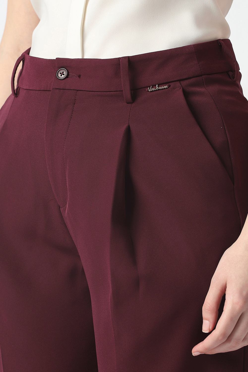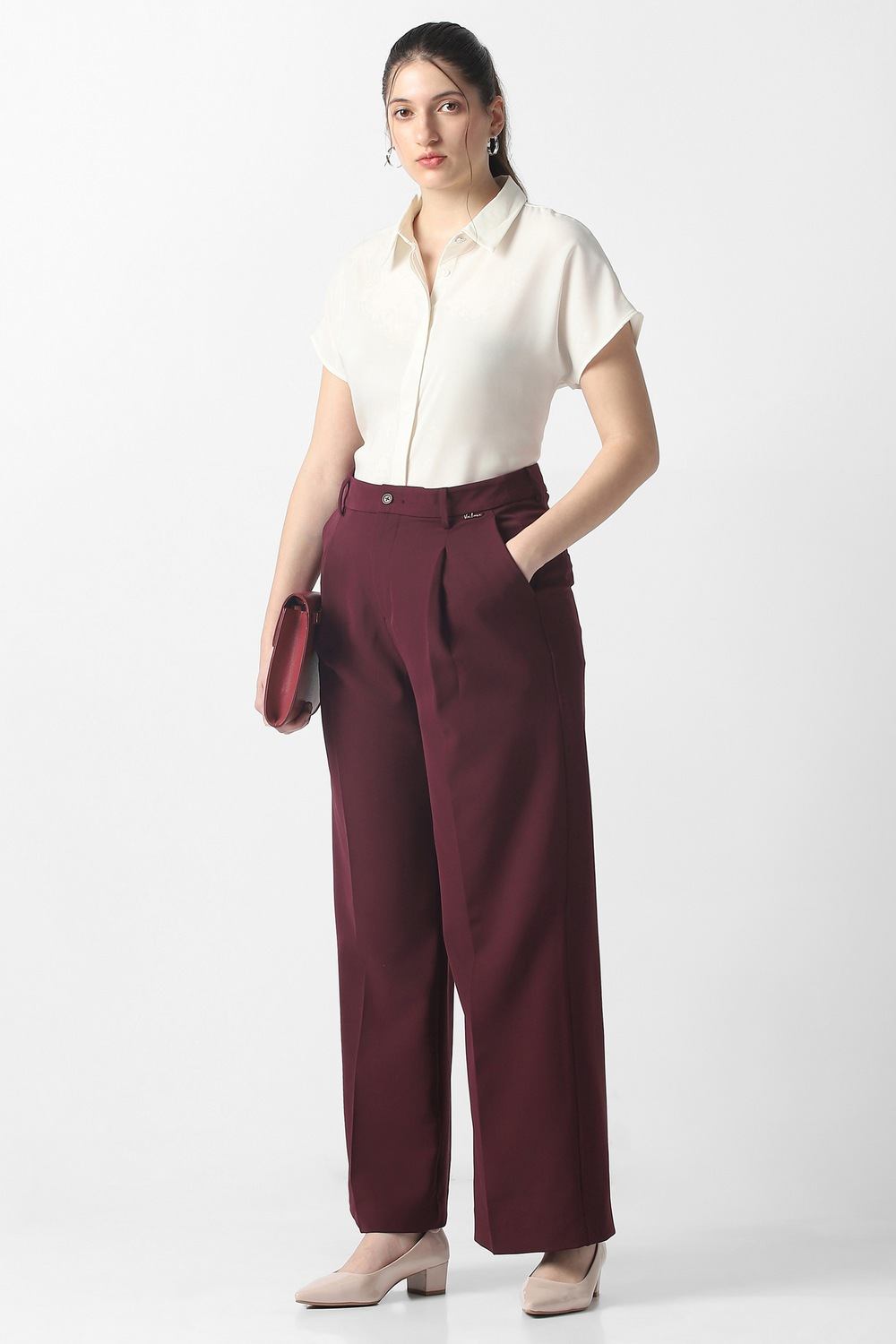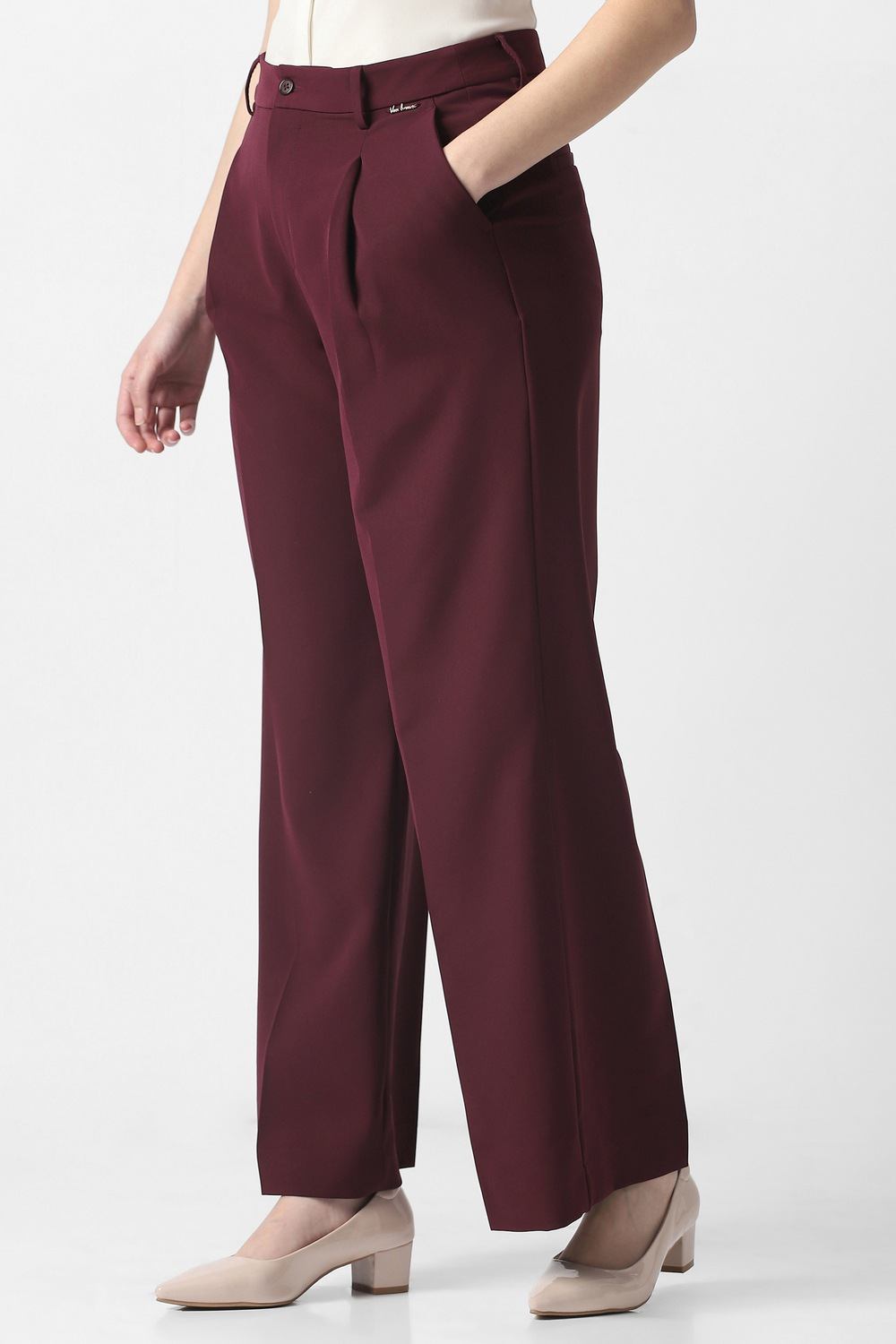 Transform your formal attire with these sophisticated maroon trousers by Van Heusen. Meticulously designed in a solid pattern, their polyester and spandex blend offers a refined look while ensuring a flattering silhouette. Perfect for both office settings and elegant events, these trousers exude confidence and class. Combine them with tailored blouses for a polished ensemble that enhances your professional profile. Experience the seamless integration of style and comfort with each wear.