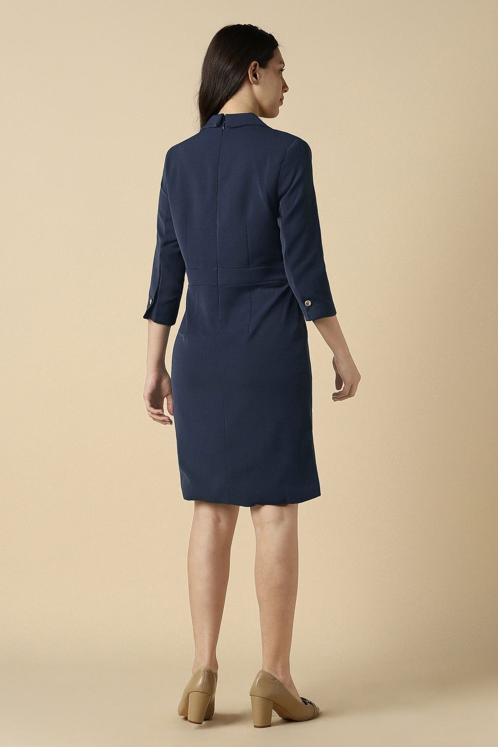 Elevate your wardrobe with this stunning Allen Solly navy dress, crafted from a luxurious blend of polyester and spandex. The solid color exudes sophistication, making it perfect for formal occasions. This dress offers a flattering silhouette and exceptional comfort, ensuring you look and feel your best. Embrace elegance and versatility in your style with this timeless piece that seamlessly transitions from day to night.