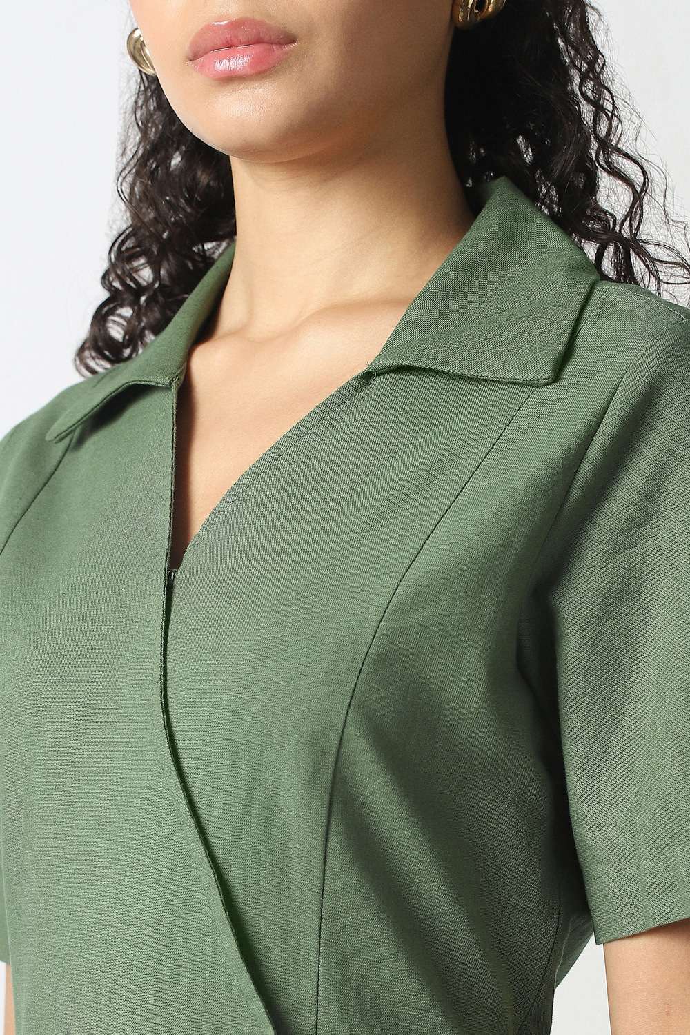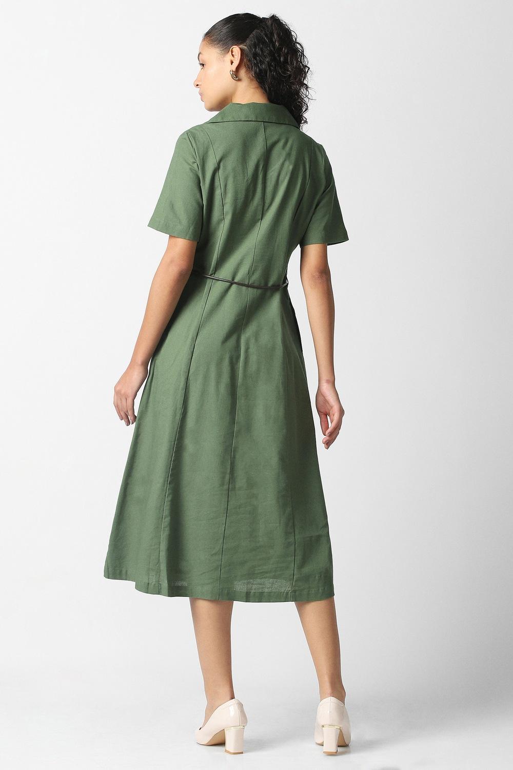 Introducing an exquisite blend of cotton and linen, this olive dress from Van Heusen embodies refined sophistication, perfect for formal occasions. The solid pattern offers a timeless appeal, while its breathability ensures comfortable all-day wear. Emphasizing your effortless grace, this meticulously constructed piece effortlessly transitions from office meetings to evening events. Explore the endless styling possibilities, allowing your personality to shine through in every setting with this essential addition to your wardrobe.