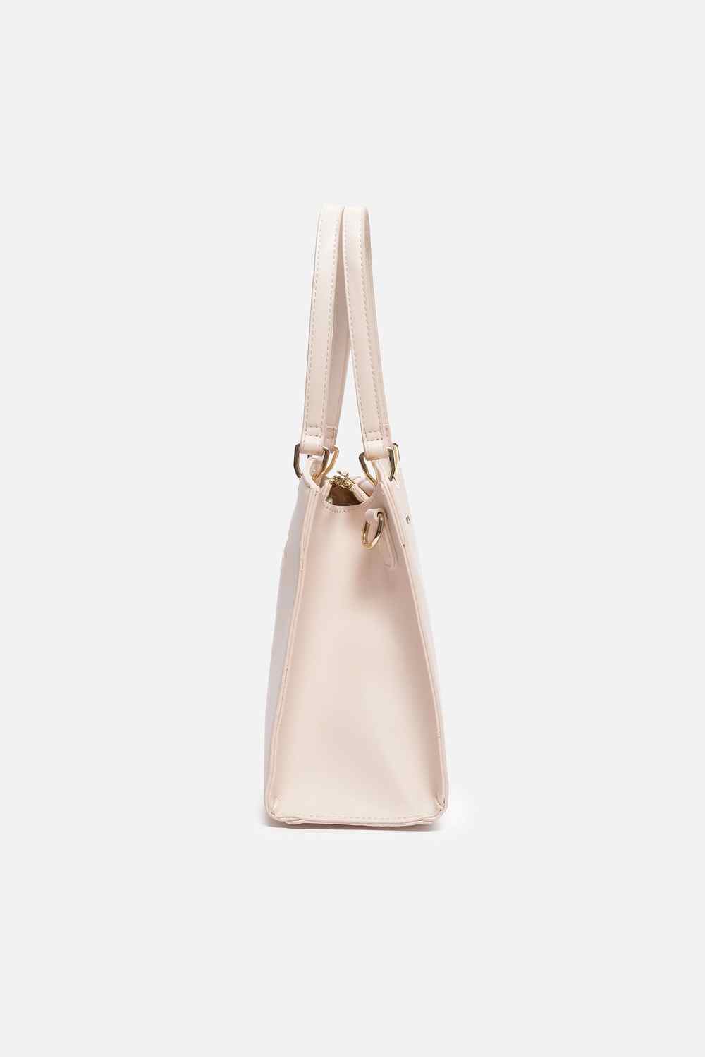 Elevate your style with the Van Heusen handbag in a vibrant pink hue. Crafted from high-quality vegan leather, this chic accessory features a trendy print that adds a pop of personality to your casual outfits. Its spacious interior ensures practicality while maintaining a sophisticated look. Perfect for outings or daily errands, this handbag seamlessly blends elegance with functionality, making it an essential addition to your collection.