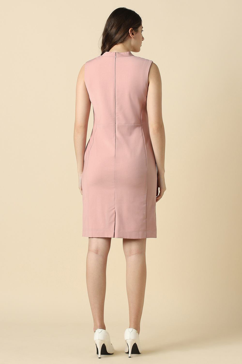 Step into elegance with this Allen Solly women's formal dress in a stunning pink hue. Made from a luxurious blend of wool, polyester, and elastane, the solid design features a flattering V-neck that enhances your silhouette. Perfect for professional settings or special occasions, this dress effortlessly combines style and comfort, ensuring you always look your best. Elevate your wardrobe with this refined piece that embodies sophistication and poise.