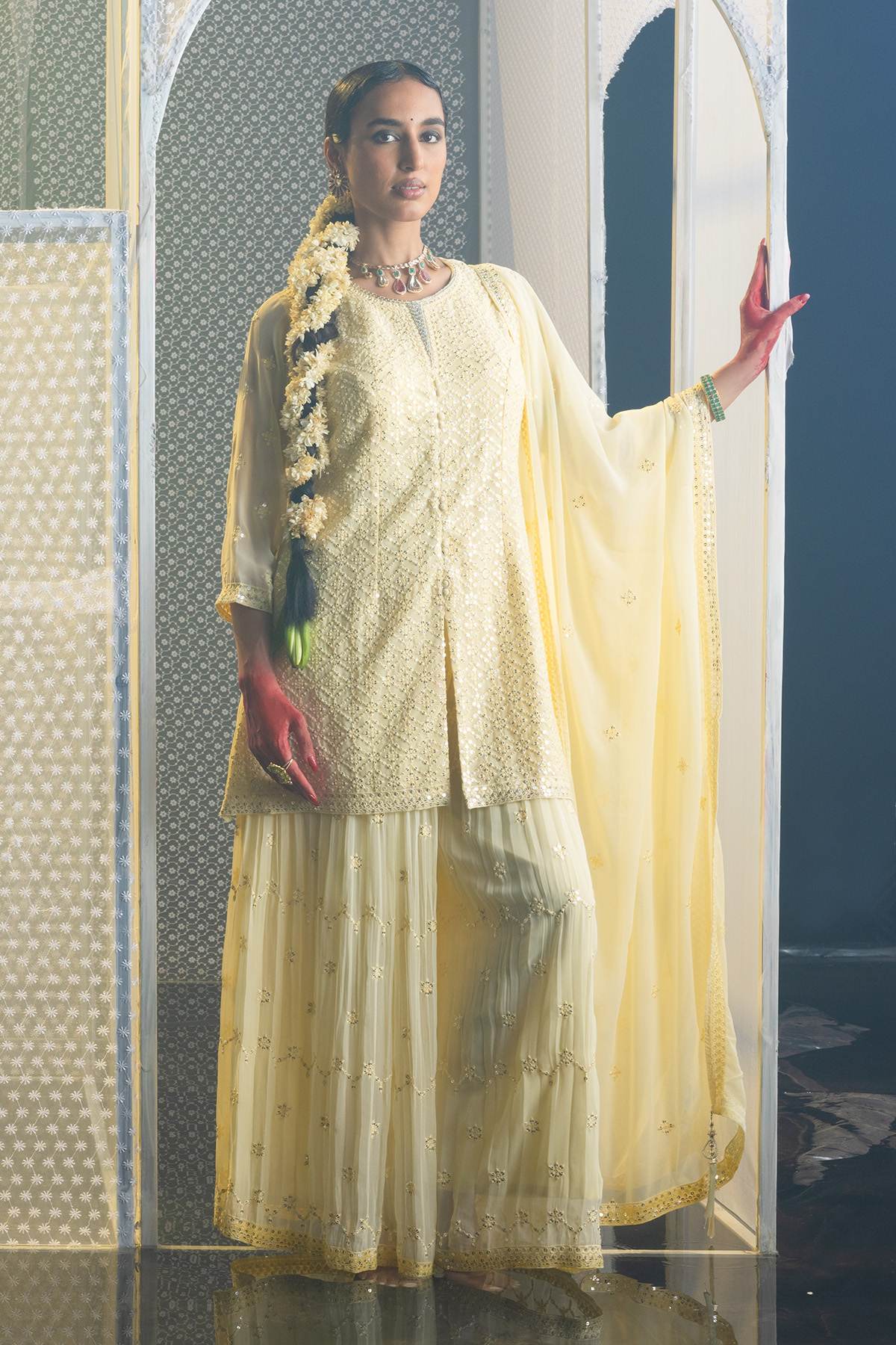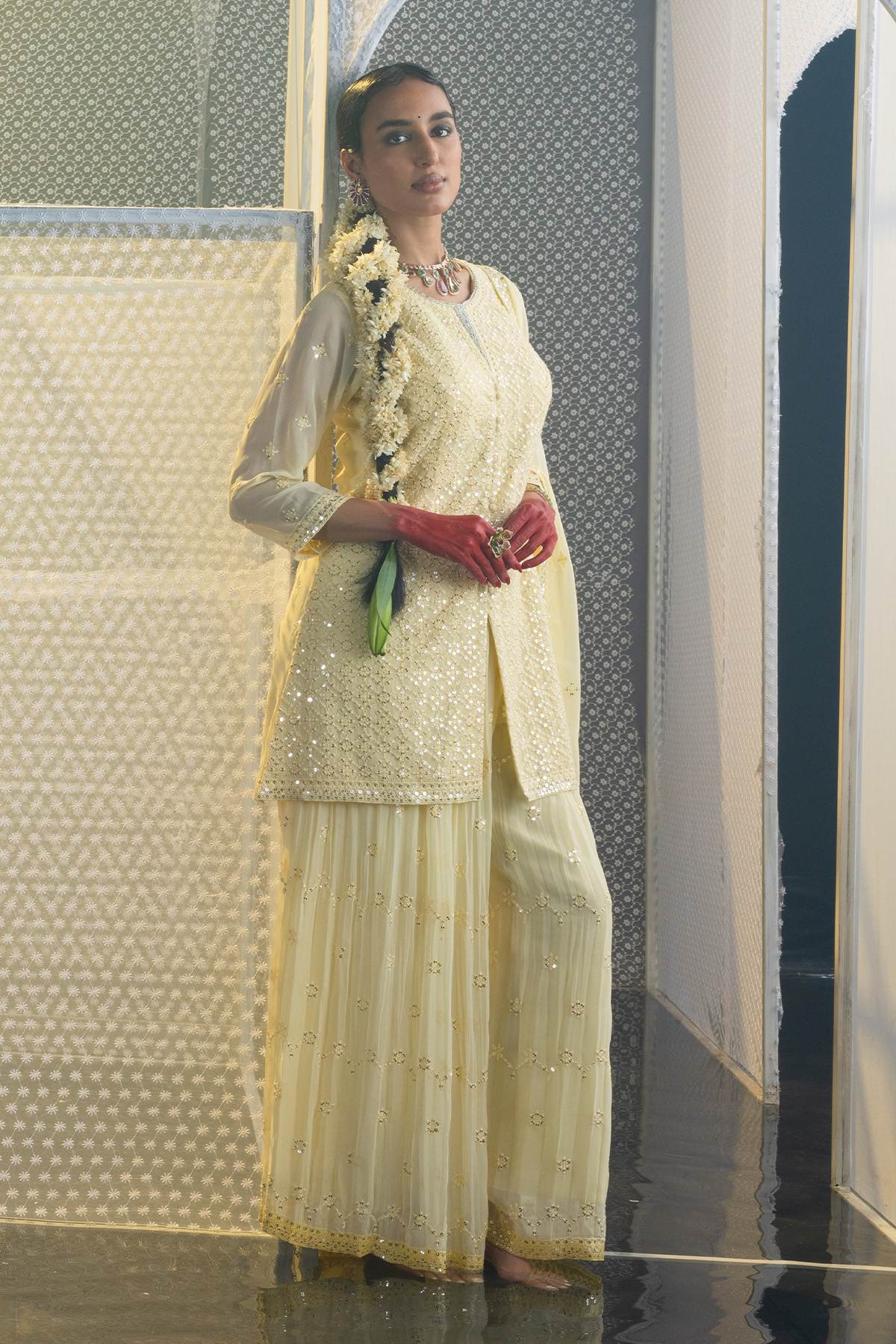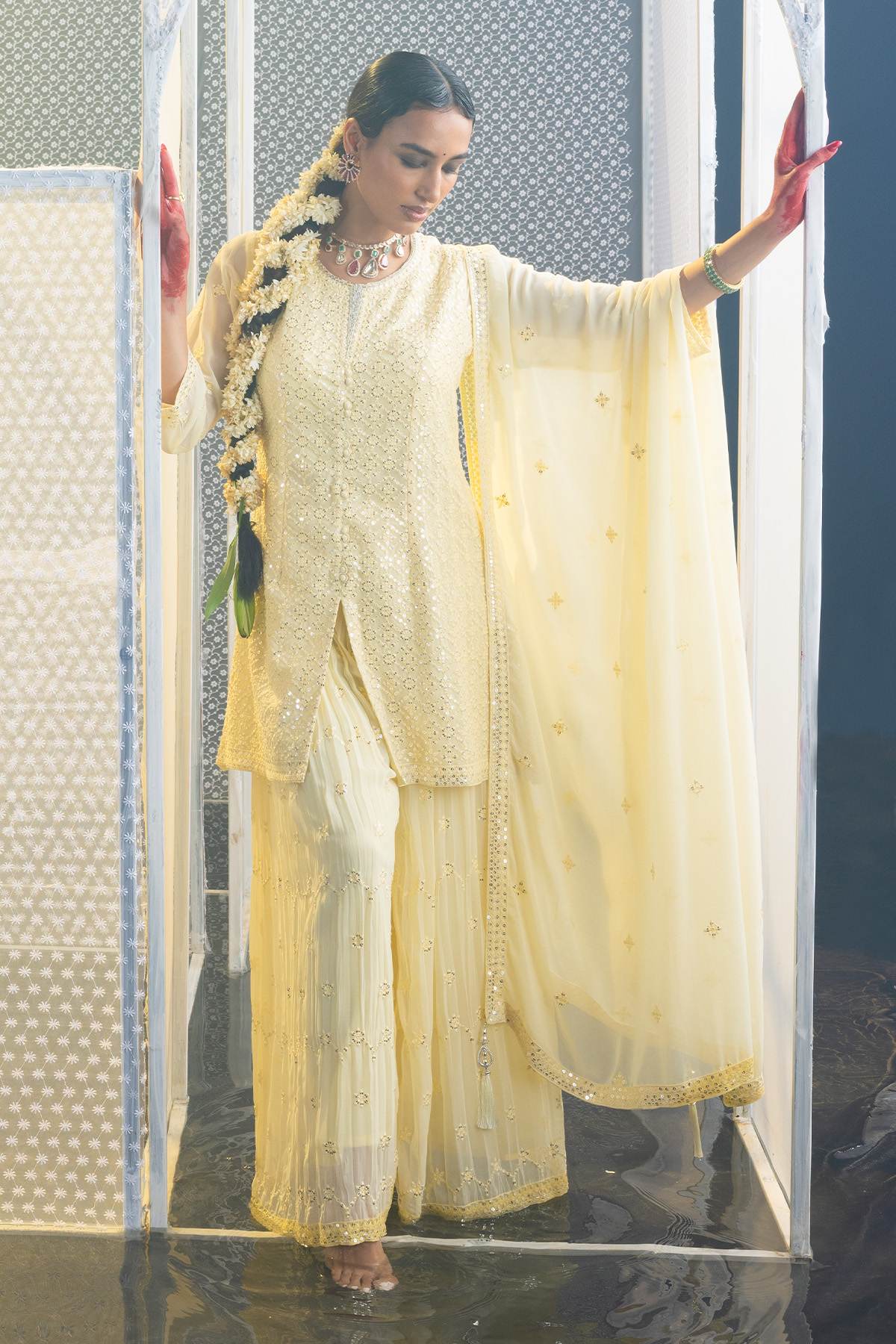 Home/Kurta Sets/Sabhyata/yellow embroidered embellished straight kurta set