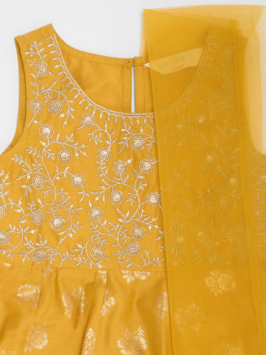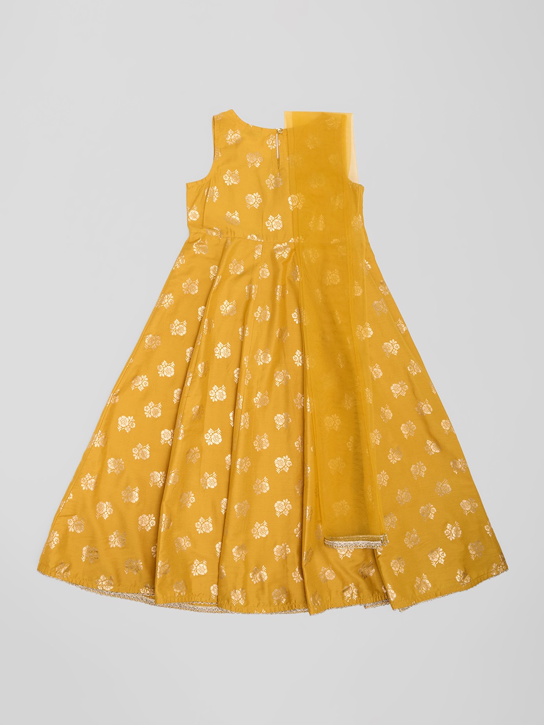 Home/Kurta Sets/Akkriti By Pantaloons/yellow foil print embroidered kurta dress and sheer dupatta set
