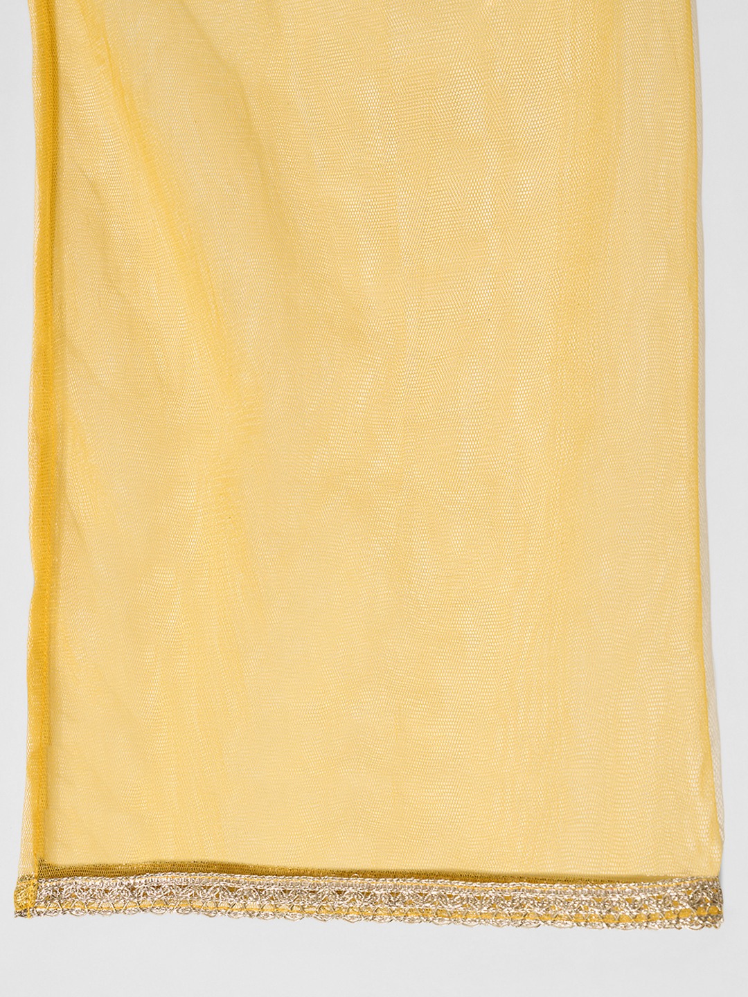 Yellow Foil Print Embroidered Kurta Dress and Sheer Dupatta Set