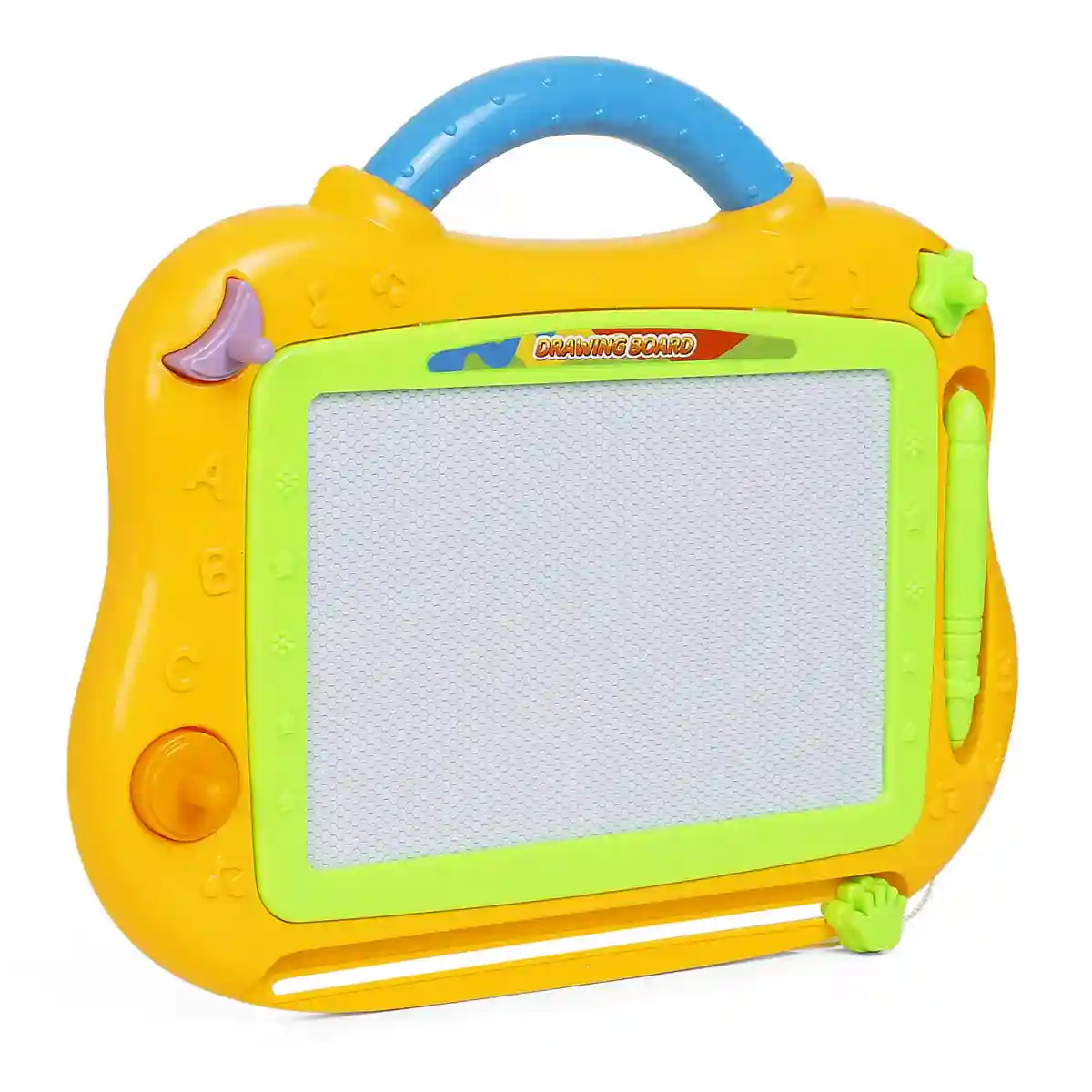 The Youreka Magic Slate is an engaging and educational toy designed to enhance children's creativity and learning. This magnetic writing and drawing board provides a mess-free and reusable surface for kids aged 3 years and above to explore their artistic abilities and practice their writing skills. With the Youreka Magic Slate, children can create colorful and imaginative designs on the board using the included art fun doodles. They can draw, scribble, and write, letting their creativity flow freely. The ability to easily wipe away their drawings and start anew encourages experimentation and builds confidence in their artistic abilities. Adding to the fun and excitement, the Youreka Magic Slate comes with magnetic shape stamps. These stamps allow children to incorporate fun shapes and patterns into their drawings, adding an extra layer of creativity to their artistic play. Kids can explore different combinations and create unique designs, promoting their cognitive and fine motor skills development. The Youreka Magic Slate is designed with ease of use in mind. Erasing the board is as simple as sliding the eraser knob, making it effortless for kids to wipe away their drawings and start fresh. This encourages continuous exploration and allows children to practice their writing and drawing skills without limitations. The multicolored design of the Youreka Magic Slate adds to its visual appeal and engages young children. The vibrant colors stimulate their senses and make the toy visually captivating. The multicolored surface also adds an element of excitement and fun to the learning experience. Overall, the Youreka Magic Slate is a versatile and interactive learning toy for kids aged 3 years and above. With its magnetic writing and drawing board, art fun doodles, magnetic shape stamps, easy erasing mechanism, and vibrant multicolored design, it offers endless opportunities for creativity, self-expression, and skill development. Whether used at home, in classrooms, or during travel, this toy provides a fun and engaging way for children to learn, explore, and unleash their imagination.